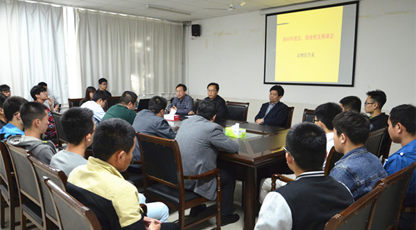 4月18日,动物医学系在动物疾病检测中心会议室举办了“迎校庆60年、创业校友座谈会”,动物医学系领导、教师代表、学生会干部及来自8个企业的创业校友参加了座谈会。