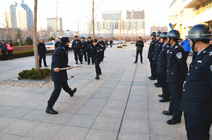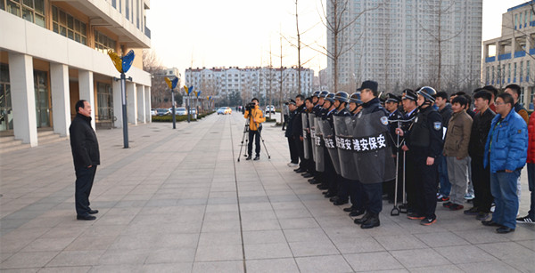 1月7日,由潍坊特警、潍坊市、高新区两级国保大队、北海路派出所、学院安保护卫队员、学生管理人员及部分学生参加的平安校园建设防暴演练,在我院三号教学楼前举行。学院副院长周其虎现场观摩演练并讲话。
