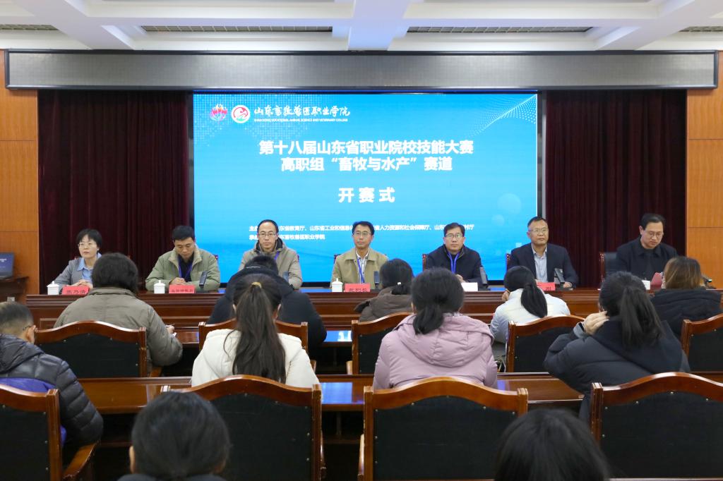 12月17日-18日,第十八届山东省职业院校技能大赛高职组“畜牧与水产赛道”比赛在我校举办。大赛由山东省教育厅、省工业和信息化厅、省人力资源和社会保障厅、省农业农村厅主办,我校承办。赛事组委会副主任、学校党委副书记、校长张乃清,潍坊市职业教育发展研究中心主任李刚出席开赛式。