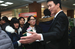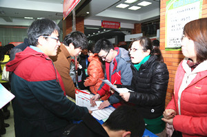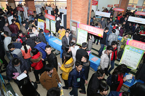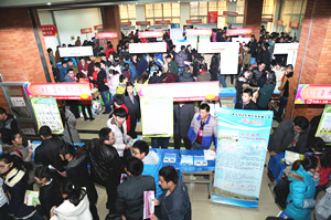12月27日,山东省2014年高校毕业生畜牧兽医类就业市场暨我院2015届毕业生专场招聘会在我院成功举办。潍坊市大中专毕业生就业指导中心主任王术平、副主任董和欣,潍坊市畜牧兽医局副局长李玉忠,院领导徐建义、乔立印、张绍秋、周其虎到双选会现场,与用人单位和毕业生交流招聘应聘、企业经营、人才需求等情况。与往年数百家单位齐聚学校抢聘人才不同的是,今年我院着力在提升毕业生就业质量上下功夫,提高招聘门槛,数百家用人单位被婉拒,仅邀请国内外知名的150家重点企业参加招聘会,实现了毕业生和用人单位双满意。
