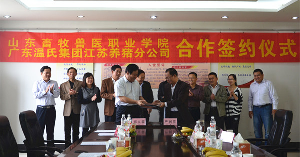 10月19日,学院党委副书记、院长郑立森访问广东温氏集团江苏养猪分公司,并签订了合作协议。