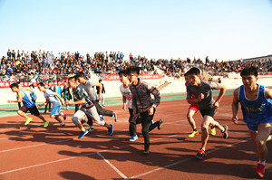 在庄严的奏国歌仪式后,郑院长致开幕词。他代表大会组委会,向运动会召开表示热烈祝贺。他指出,体育教育是素质教育的重要组成部分,是实现我国体育目标任务的重要途径,是开展全民健身运动的战略重点,是大学生健康成长、全面发展的基础性工程。多年来,学院全面贯彻落实党的教育方针,高度重视群众性体育运动,坚持把学生体质健康放在重要位置,注重加强体育文化素质教育。去年以来,学院以体育评估为契机,进一步加强对体育工作的领导,加大体育教育教学投入力度,深化体育课程建设改革,完善体育锻炼设施,改善体育教学条件,促进了体育事业的发展,为师生健康工作、学习和生活奠定了坚实基础、提供了有力保障。我院学生在今年山东省第23届运动会上取得了可喜成绩。本届田径运动会的胜利召开,对于进一步振奋师生精神、凝聚全院力量,促进群众性体育活动的广泛开展,必将产生重大推动作用。他希望全体运动员努力拼搏,赛出风格,赛出水平;希望全体裁判员严格执法,公平裁判;希望全体工作人员和师生服从指挥,密切配合,文明守纪,热情服务,注意安全,确保运动会顺利进行,努力争取运动水平和精神文明双丰收。