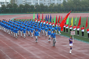 上午8点,运动会开幕式开始。会徽护卫队、彩旗方队、裁判员方队、各系部运动员方队队列严整、步伐矫健、精神振奋地依次入场。部分系部表演了简洁欢快的舞蹈,给紧张的竞技运动增添了活泼轻快的气氛。