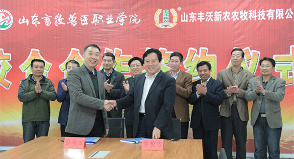 在深入交流沟通的基础上,双方签订了合作协议书。学院团委学生处、校企合作处、动物科技系、动物营养与水产系负责人及山东丰沃新农集团部分高层管理人员参加交流活动。