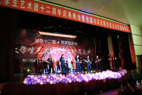 精彩纷呈的文艺晚会艺术地展现了大学生艺术团走过的12年历程。学院相关部门负责人、部分师生以及山东丰沃新农农牧集团的部分员工参加了活动。(院团委 供稿)