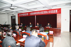 11月9日,由山东省畜牧兽医局、山东省总工会、山东省人力资源和社会保障厅主办,山东畜牧兽医职业学院协办的2014年全国动物防疫职业技能竞赛山东省选拔赛在我院举行。山东省畜牧兽医局副巡视员盖仲起,山东省农林水工会主席孔祥贞,学院党委副书记、院长郑立森,山东省畜牧兽医局总兽医师王瑞华等领导出席开幕式。
