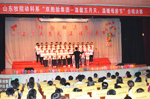 5月23日晚,动物科技系在图书信息中心举办“温馨五月天•温暖母亲节”合唱比赛决赛。动物科技系、双胞胎集团山东区负责人等观看了比赛。