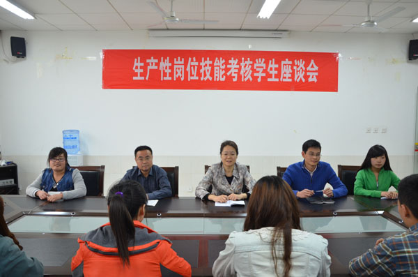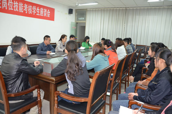 为了解2012级兽药生产营销专业学生在山东亚康药业公司进行岗位技能培训的情况,优化专业人才培养模式与方案,做好下学期学生的顶岗实习安排工作, 4月10日,食品与药品科技系召开了生产性岗位技能考核学生座谈会。系领导、指导教师以及2012级兽药生产营销专业学生参加了会议。