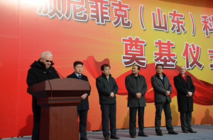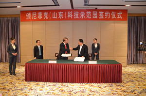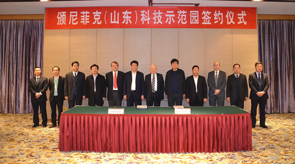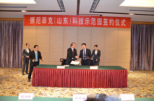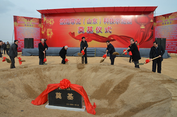 1月8日,颁尼菲克(山东)科技示范园合作签约和奠基仪式在安丘举行。学院党委书记曲国庆、副院长张绍秋,法国AGH集团主席阿兰•格隆、AGH集团亚洲主席彭诺瓦•格隆、AGH集团亚洲区执行总监狄迪烨•穆莱克、颁尼菲克中国区总裁王义杭,安丘市委书记、市人大常委会主任刘兴明,市委副书记、市长桑福岭出席。