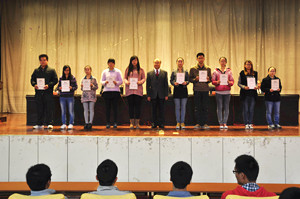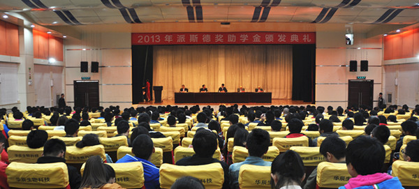 在奏国歌仪式后,周其虎副院长宣读了《关于表彰2012—2013年度派斯德奖助学金获得者的决定》。经我院推荐审核、公司同意和公示,张世平等60名学生获得本年度派斯德奖学金,40名学生获得本年度派斯德助学金。