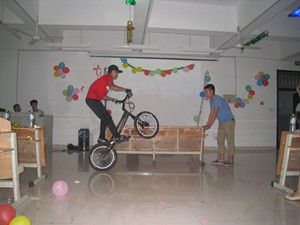 晚会中,参演的同学尽展才能,动感舞姿、美妙歌喉、幽默故事,异彩纷呈,尽展大学生的青春活力,现场气氛热烈。新生张金田同学的攀爬自行车车技更是将整场晚会的气氛推向高潮。晚会在一片欢声笑语中圆满落下帷幕。