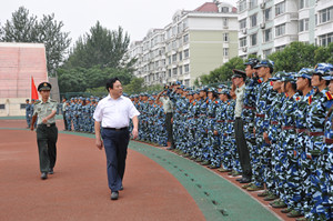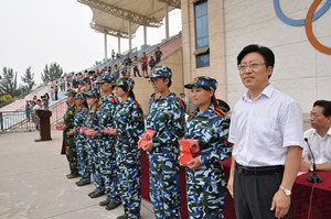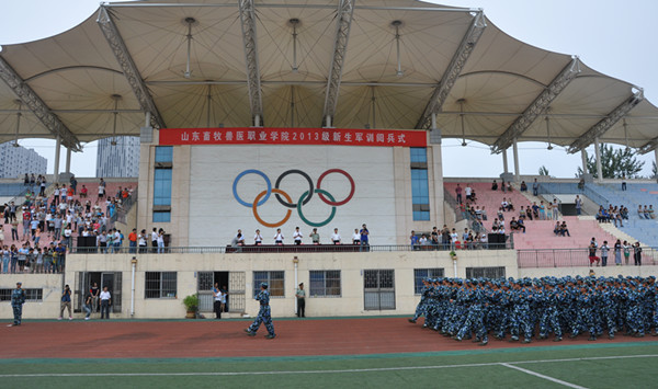 9月21日,学院在体育场隆重举行2013级新生军训阅兵式。学院党委书记曲国庆,党委副书记、院长郑立森,中国人民解放军驻潍某部指导员侯建军,院领导徐建义、张绍秋、郭立堂出席。副院长周其虎主持仪式。