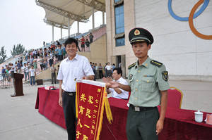 曲书记代表学院向承训部队赠送“军民一家 共育人才”的锦旗,感谢他们对我院军训工作的支持。