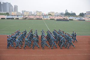 在庄严的奏国歌、迎军旗仪式后,郑院长在承训部队指导员陪同下,检阅了各方队。“同学们辛苦了!”“为人民服务!”的嘹亮口号响彻校园。分列式上,各方队步伐整齐、军姿威武、口号响亮、士气高昂,依次通过主席台,接受检阅。之后进行的军体拳、教练员基本功操汇报表演,队列严整、动作一致、虎虎生威,充分展示了训练成效,赢得领导和现场师生的阵阵热烈掌声。