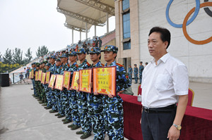 承训部队指导员侯建军在讲话中说,看了同学们的分列式和汇报表演科目,感到十分欣慰和震撼。全体新生昂扬的士气、出色的表演,充分展示了青年学子的风采和山东牧院治校严谨的优良校风。他认为取得如此出色的军训成果得益于参训官兵的辛勤教练、学院领导老师的重视支持和参训同学们肯吃苦、悟性高。他认为通过军训,新生们增强了吃苦精神,磨练了意志,培养了良好的组织纪律观念和严谨的生活作风。相信他们今后会更加热爱祖国,热爱军队,热爱生活,热爱学校。希望他们能保持军训期间的优良作风和坚毅品质,在未来的学习生活中,树立百折不挠、穷且益坚的人生信念,刻苦学习,超越自我,不断前进。
