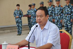 郑院长在讲话中代表全体师生向承训部队全体承训指战员致以崇高的敬意,向保障军训工作顺利进行的所有人员表示衷心的感谢,向刻苦参练的全体学生表示亲切的慰问,向受表彰的先进集体和个人表示热烈的祝贺。他指出,在高校开设军事课程和对大学生军训是时代的需要。在两周的军训中,部队全体教官充分发扬了人民军队的优良传统和作风,按照计划,起早贪黑,不辞劳苦,精心组织,严格要求,率先垂范,以饱满的政治热情、严谨细致的工作作风、一往无前的军人品质,影响并带动着学生们,使他们在潜移默化中受到了良好教育。全体参训学生以军训教官为榜样,以蓬勃的朝气和饱满的热情,全身心投入军训,不怕日晒雨淋、不怕汗湿衣襟,对每一种军姿都认真领会,反复训练,保质保量地完成了军训任务。