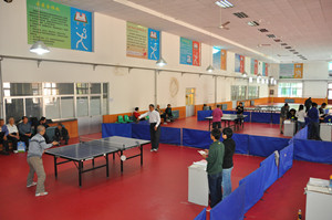 10月18日,由潍坊市教育局主办、我院承办的2013年市直教育系统离退休老干部乒乓球男子团体赛在我院乒羽馆举行。来自我院、潍坊学院、潍坊医学院、潍坊广文中学、潍坊中学、潍坊一中、潍坊工程职业学院、潍坊七中、潍坊职业学院、潍坊商校的十支代表队参加了比赛。