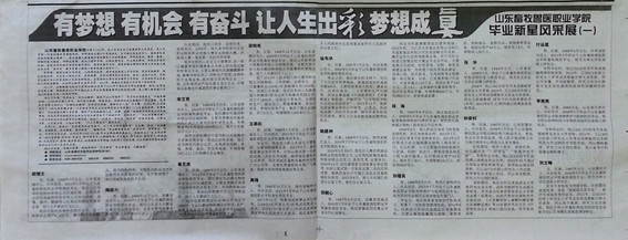 5月18日,《齐鲁晚报》以“有梦想有机会有奋斗,让人生出彩梦想成真”为题,用通栏整版的篇幅,对我院最近评选的百名毕业新星的主要事迹予以展示。